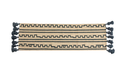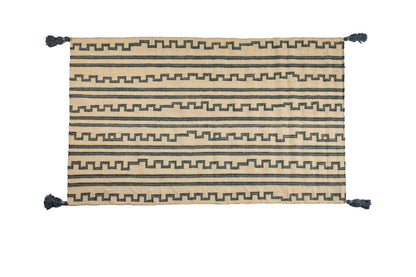 Warm up your space with this 100% woven cotton rug, adorned with a Mediterranean striation pattern and matching tassels.