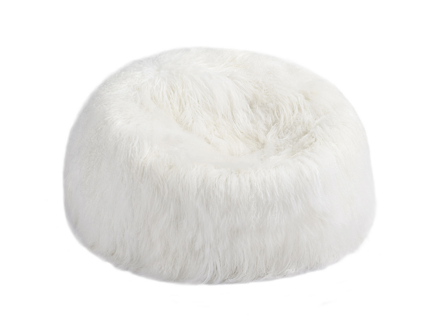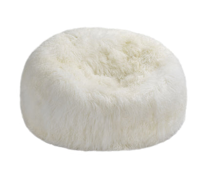 Relax in our cozy and luxurious Tibetan Long Wool Sheepskin Bean Bag Cover with a sturdy safety zipper and leather base.