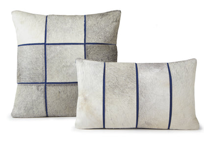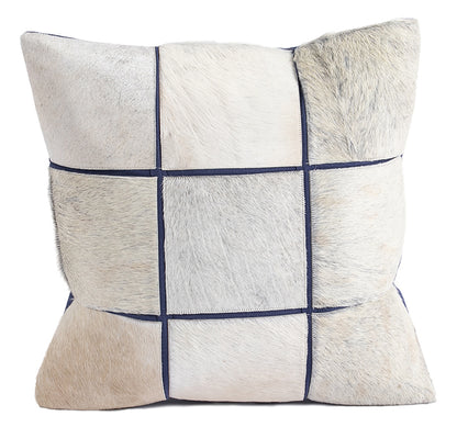 Indulge in the unique texture of hair-on-hide leather with our single-sided pillow, featuring nine panels with cotton fabric insets.